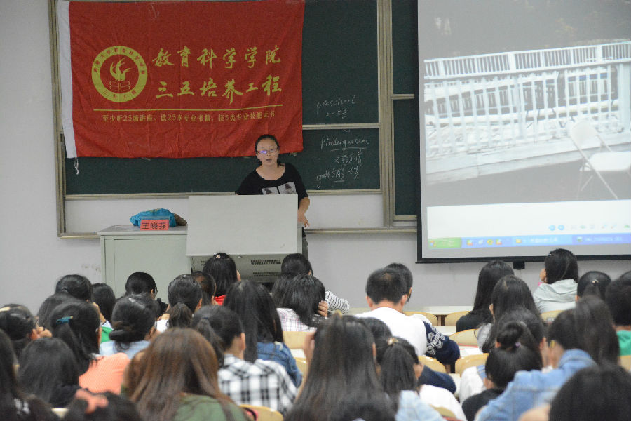 9月28日下午2点,由南通腾博官网诚信为本专业服务组织的三五讲座在8号楼106教室成功举办。本次讲座主题为《美国幼教见闻》,由教科院学前教育系王晓芬老师主讲,120余名同学参加本次活动。