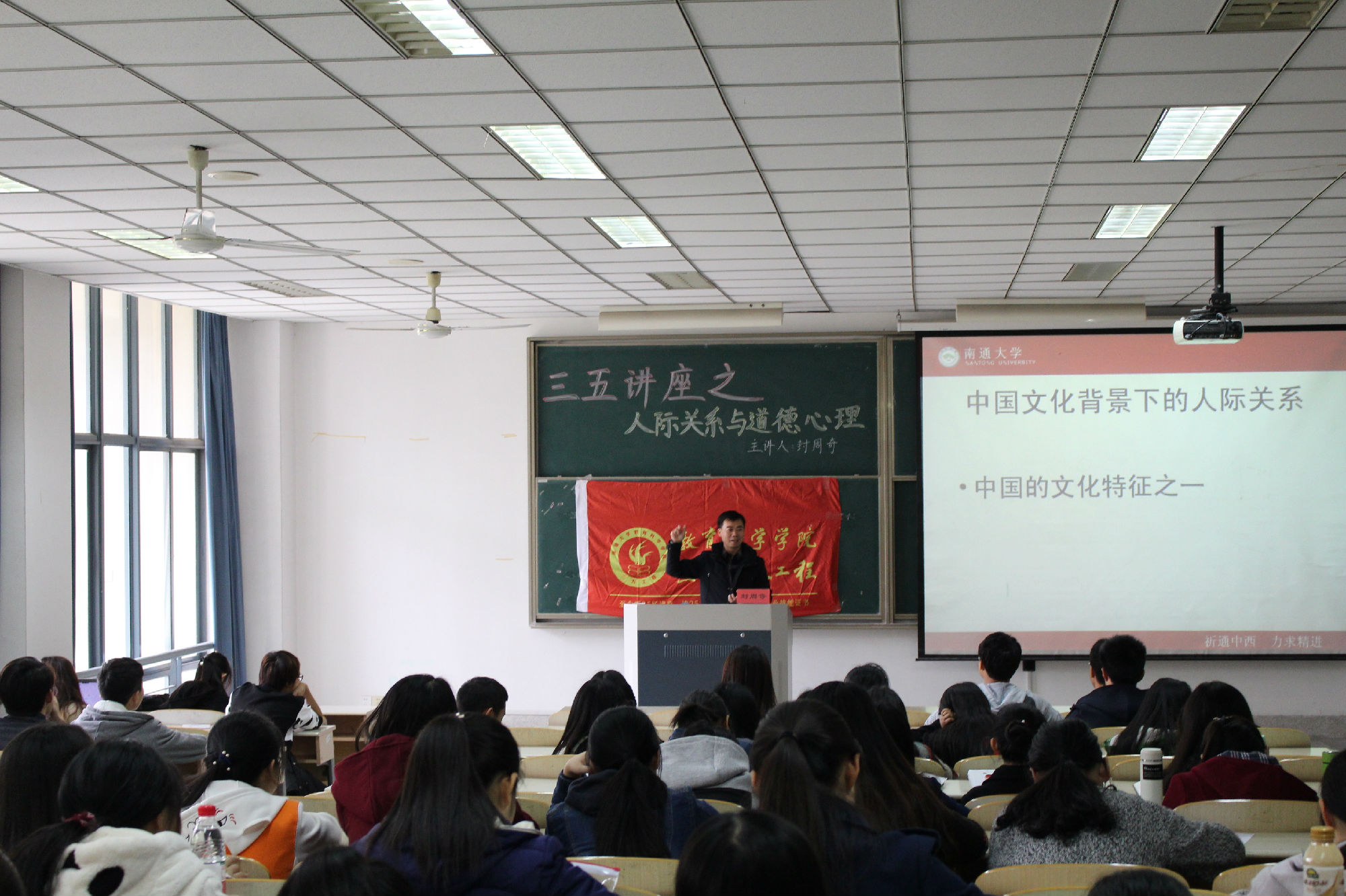 11月16日下午,南通腾博官网诚信为本专业服务特邀来应用心理系博士封周奇老师在8号楼202教室举行了“人际关系与道德心理”专题讲座。共有100余名来自应用心理系的同学参加了本次讲座。