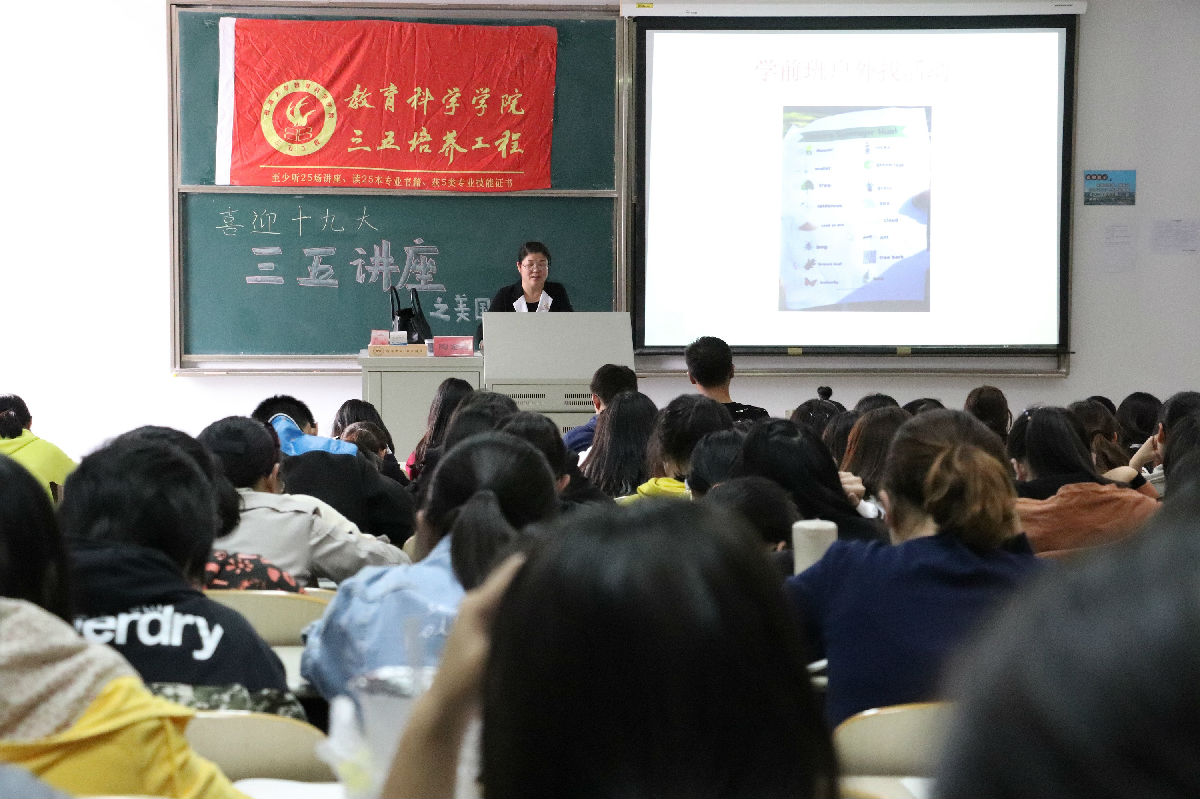 讲座中,陶金玲老师首先向我们讲解了她在美国生活时的所见所闻发表了自己的感想。对比了美国与中国教育以及生活方式的不同,指出中美教育中存在的问题,指出美国先进教育经验对国教育改革的借鉴。鼓励大家勤于学习,既要借鉴美国教育长处,从中取长补短,吸取人经验,又要结合我们自己的实际,促进教育改革,创新中国教育特色,让中国成为实力与智力底蕴深厚的强国。