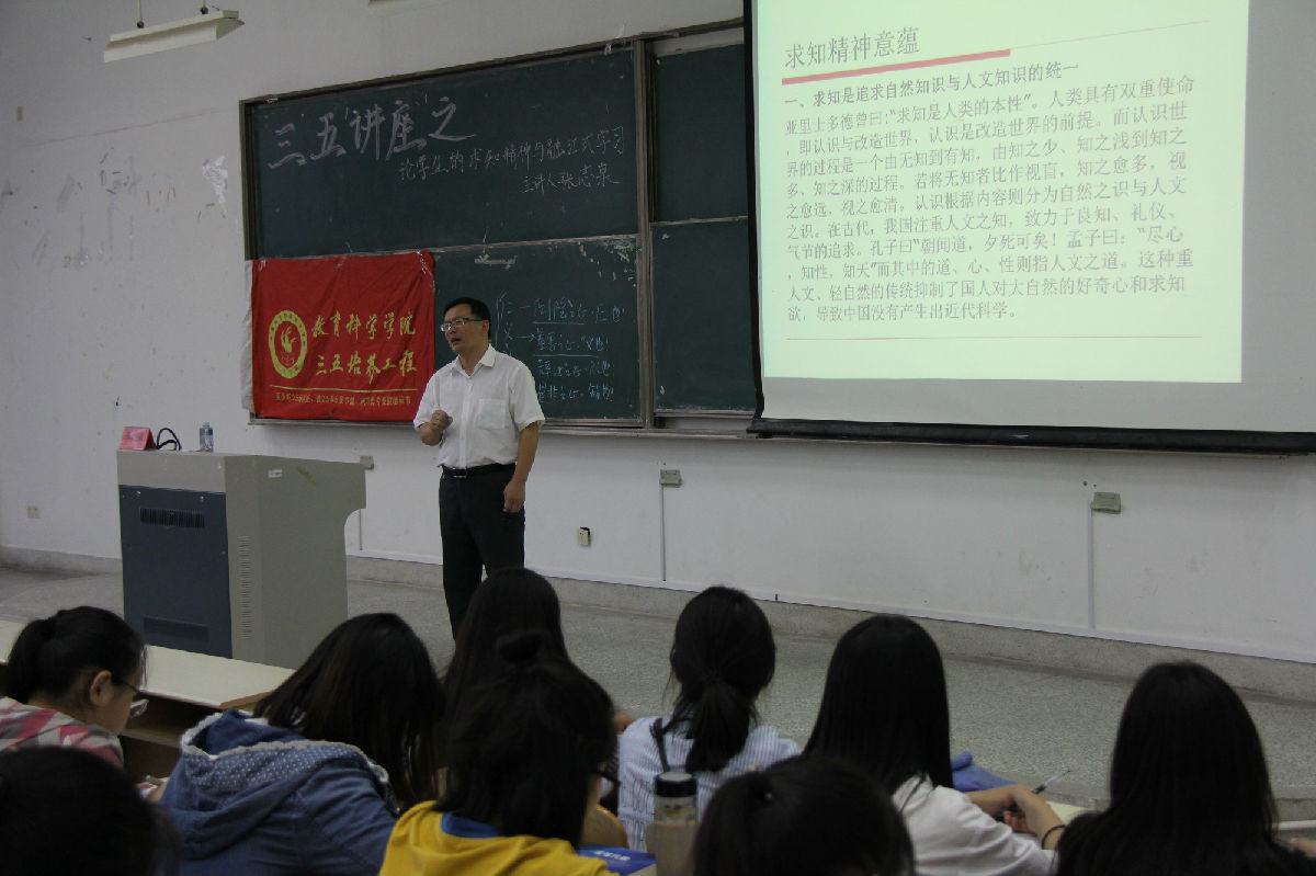 2017年10月11日下午2点,张志泉教授主讲的“论学生的求知精神和融汇式贯通”三五讲座在主校区9号楼202教室成功举办,教育科学学院近300名学生聆听了此次讲座。