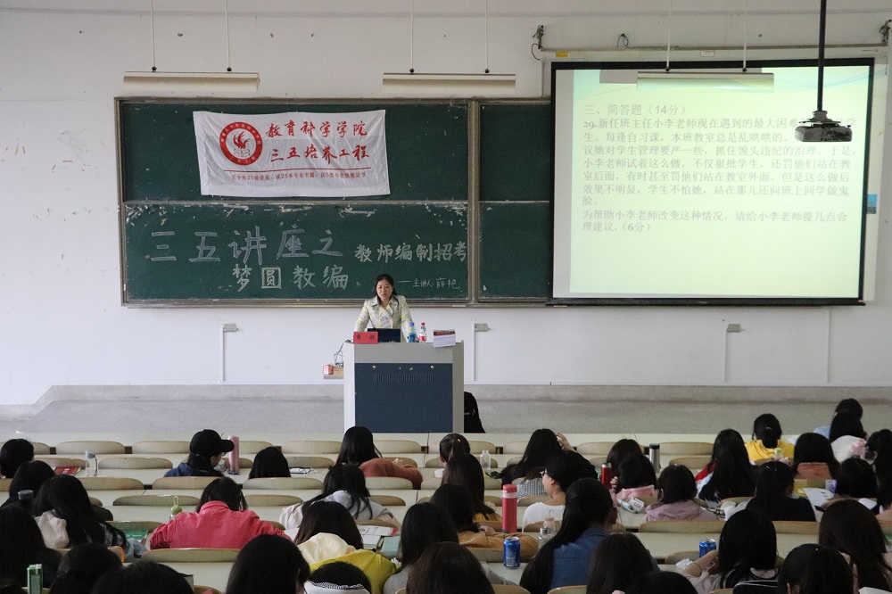 考编,是实践能力下的思维,需要补充技能的精致化练习,选择与否,决定了一个人未来一段时间的方向。此次讲座旨在为准备考编的学生解惑,不仅让学生清楚了教师编制的招考政策及其过程,还让学生在心理学知识方面有所精进,更提高了教科院学生的整体素养。