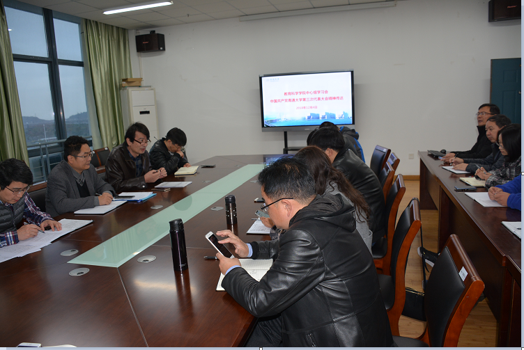 12月5日下午,教育科学学院党支部召开中心组会议专题学习贯彻学校第三次党代会精神。学院党政领导、各系主任、党支部书记以及行政部门科级干部参加会议。会议由党总支书记陈炜主持。