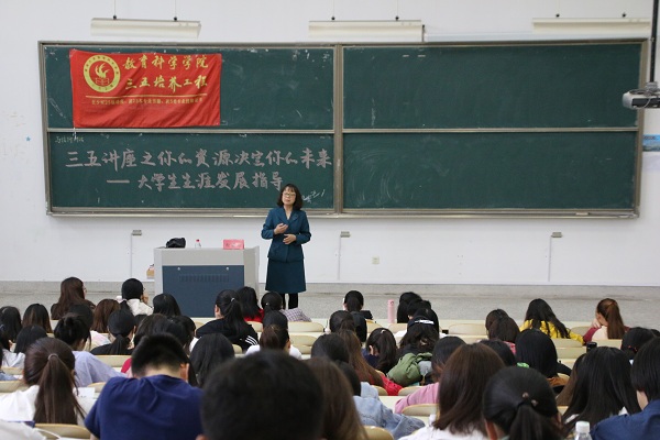 5月15日,教育科学学院在9号楼303举办了以“你的资源决定你的未来--大学生生涯发展规划”为主题的三五讲座,本场讲座由张晓玲老师主讲,教科院近280人到场聆听。