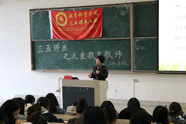 11月20日下午,南通腾博官网诚信为本专业服务于9号楼202教室举办以“儿童教育教师”为主题的三五讲座。此次讲座由苗雪红老师主讲,教科院280余名同学到场聆听。