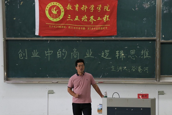 10月14日,南通腾博官网诚信为本专业服务于9号教学楼202教室举办以“创业中的商业逻辑思维”为主题的三五讲座。此次讲座由学院2008届优秀校友谷巷河主讲,教科院近200名同学聆听了本次讲座。