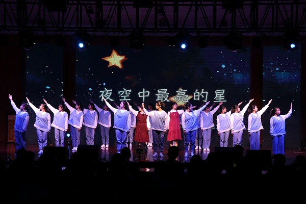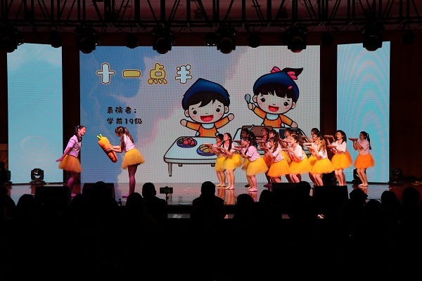第二篇章“尽情翱翔”篇,手语操《夜空中最亮的星》用无声的语言传达出最坚定的力量,在舞动的双手间编织出青春与爱的愿景。相声《四大天王》则用幽默诙谐的表演表达了高年级同学对新同学的美好祝愿。儿童舞《十一点半》用诙谐明快的舞姿展现了儿童的活泼可爱,倡议大家光盘行动,从我做起。第三篇章“扬帆起航”,小品《选节目》生动真实地再现了节目筹备中的点滴故事。韩舞《DNA》激情澎湃,点燃了每个人的热血与闪耀。民乐合奏《万神纪》让泱泱华夏的积厚流光于方寸舞台尽情绽放。合唱《小幸运》用青春与梦想为晚会画上了完美的句号。