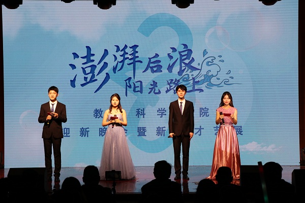 11月21日晚,教育科学学院“澎湃后浪·阳光路上”迎新晚会暨新生才艺展在啬园校区大学生活动中心举行。院长陈炜,学院党委副书记、副院长徐红波,副院长沈永江,副院长姜永杰以及2020级新生班主任和600余名教科院学子参加了晚会。