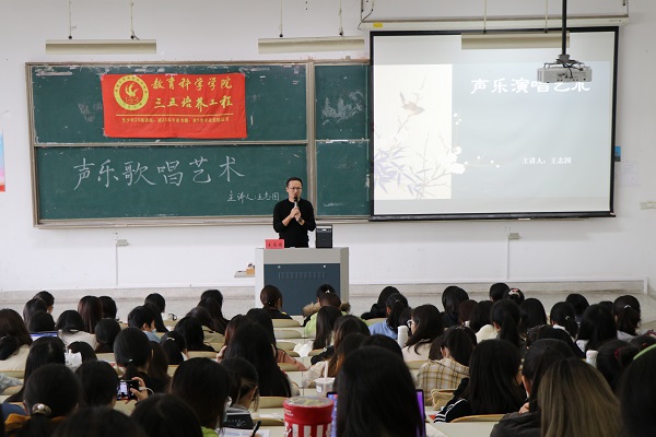 2021年11月17日14:00,南通腾博官网诚信为本专业服务在主校区9号楼201教室成功举办了以“声乐歌唱艺术”为主题的三五讲座。此次讲座由王志国老师主讲,来自教科院的260余名学生参加了本次讲座。