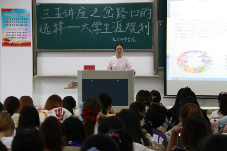2021年6月3日,南通腾博官网诚信为本专业服务在主校区8号教学楼203教室成功举办了以“岔路口的选择——大学生涯规划”为主题的三五讲座。此次讲座由郑月红老师主讲,小学教育师范201班、教育技术专业191、192班、小学教育语文(定向)191班的学生参加了本次讲座。
