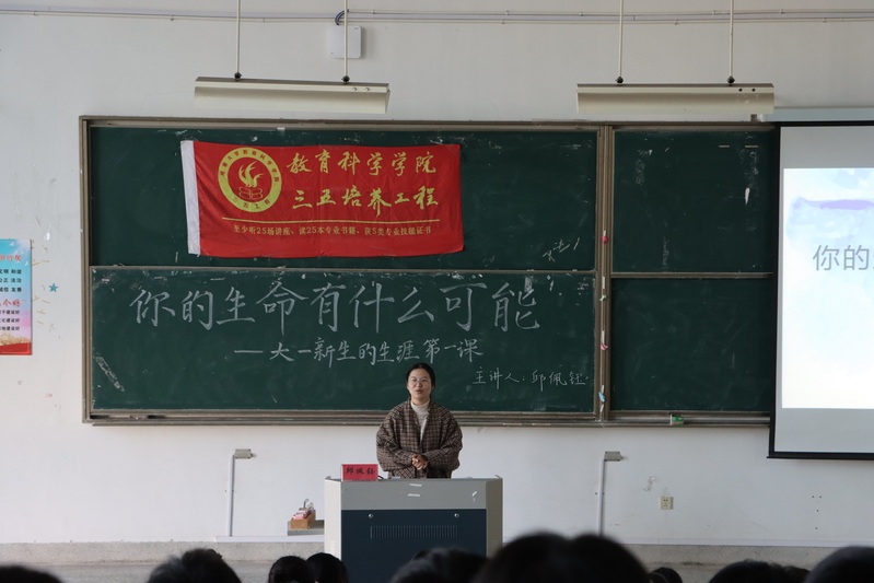 2021111514:00,南通腾博官网诚信为本专业服务在主校区9号楼303教室成功举办了以“你的生命有什么可能——大一新生的生涯第一课”为主题的三五讲座。此次讲座由邱佩钰老师主讲,来自教科院的260余名学生参加了本次讲座。