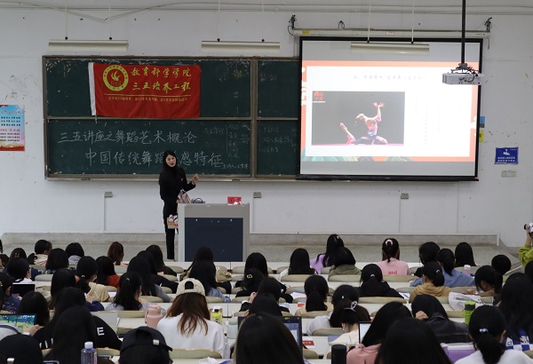 2022年11月9日下午,我院在九号楼202教室举办了以“舞蹈艺术概论——中国传统舞蹈美感特征”的三五讲座,本次活动的主讲人是王雪萍老师,260余位学生参加了讲座。