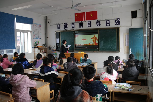 志愿者为四年级学生上学习雷锋好榜样主题班会