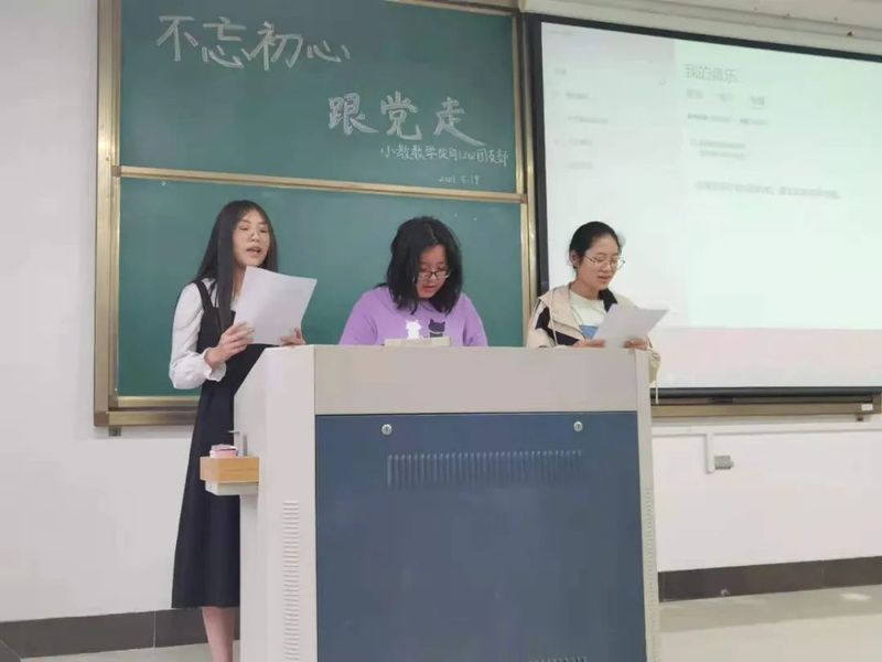 2021年5月19日,小教数学定向202举办了“不忘初心跟党走”主题团日活动。首先由杨婷婷同学讲述开展本次团日活动的目的,并带全班同学观看了党的光辉历史相关的视频,引导同学们了解党的光辉历史、感悟党的初心使命、传承党的红色基因,更加自觉地以习近平新时代中国特色社会主义思想武装头脑,进一步增强“四个意识”、坚定“四个自信”、做到“两个维护”,坚定不移跟党走中国特色社会主义道路,为全面建设社会主义现代化国家、实现中华民族伟大复兴中国梦贡献青春力量。