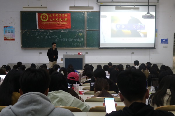为拓宽学生的知识和学术视野,提高学生科学文化与人文素养,规划更有意义的大学生活,教育科学学院于112日在九号教学楼202教室举办以“大学该如何过?——基于心理学视角的诠释”为主题的“三五”讲座。讲座由陈乐乐老师担任主讲老师,教育科学学院的260余名同学参加了讲座。