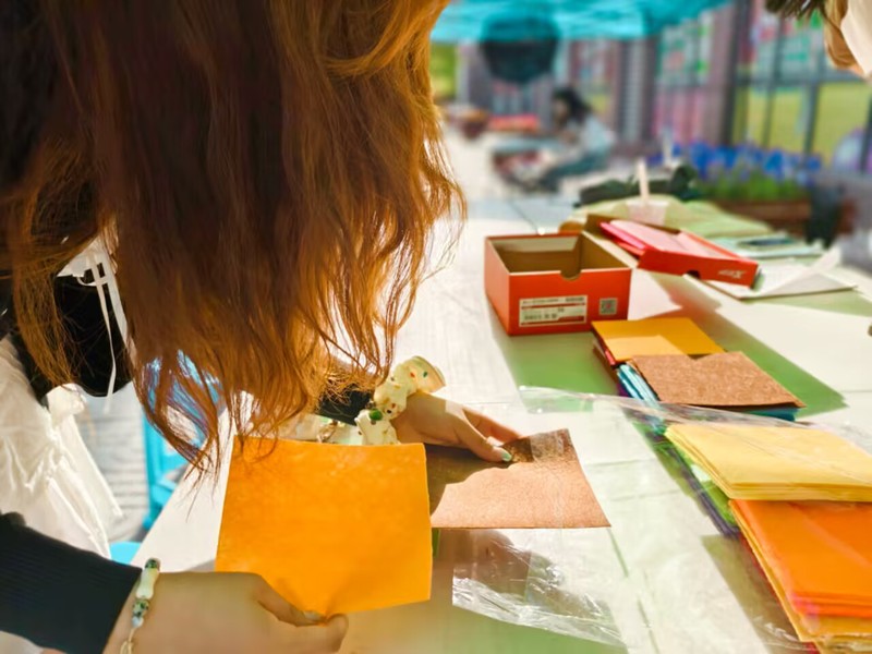 活动内容精彩纷呈,首先是不织布体验,活动当日恰逢“520”,同学们不仅领取材料进行了自由创作,还在活动现场挑选了喜欢的颜色,剪出一个爱心作为纪念。在制作褶皱花活动中,同学们亲手制作花朵,并在彩纸上写下对自己、亲人和朋友的祝福。情绪便利贴活动则鼓励同学们分享内心的情绪,将积极或消极情绪写在便利贴上并放入情绪箱。最后,线上照片墙活动邀请同学们上传能够给予他们力量和温暖的照片,这些照片将被组合起来,与教科院或南通大学的图片叠底,共同制作并发布一张充满回忆与温情的大合照。