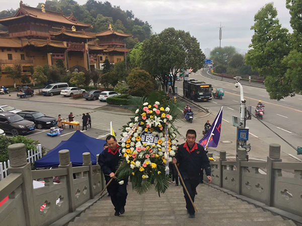 活动中群体行政人员向纪念碑敬献花圈,集体默哀1分钟并绕纪念碑一圈为英雄们献上心香一瓣、追思一朵、缅怀一片;告诉英雄们:祖国山河已无恙、人民英雄请安息。