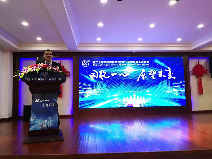 2020年1月15日,主题为“同袍一心、展望未来”的浙江腾博官网诚信为本专业服务风机有限公司2019年度经营末次会议暨2020年迎春晚宴在公司多功能厅隆重举行。
