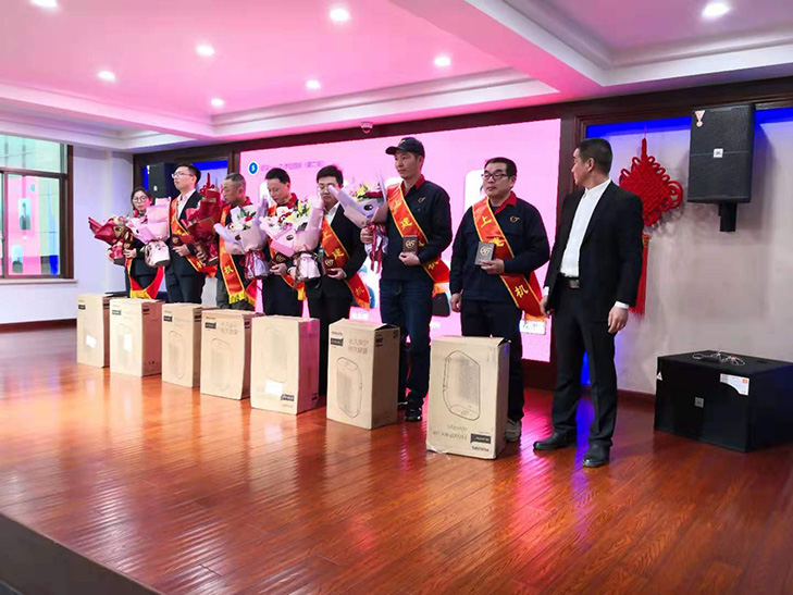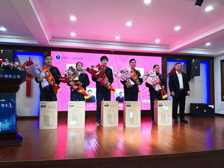 上午8点30分随着腾博官网诚信为本专业服务CEO童海标先生及其女儿童彤(主持人)共同开启盛会钥匙而拉开帷幕。随后公司五大部门(经管部、技术部、制造部、品管部、营销部)各负责人先后作了年度工作总结及明年工作规划的汇报。颁发了杨秀刚等十二位工作楷模奖;龙艳付等五位品质守护奖;赵春才等五位特殊贡献奖;郑法根等六位销售精英奖;欧起逢等两位主人翁奖以及突飞猛进奖和卓越团队奖两个集体奖项,个人先进各奖价值1180元飞利浦空气净化器一台,两个团队各奖励现金3000元,以奖励他们在过去的一年中在各自的岗位上所做出的贡献与成绩。