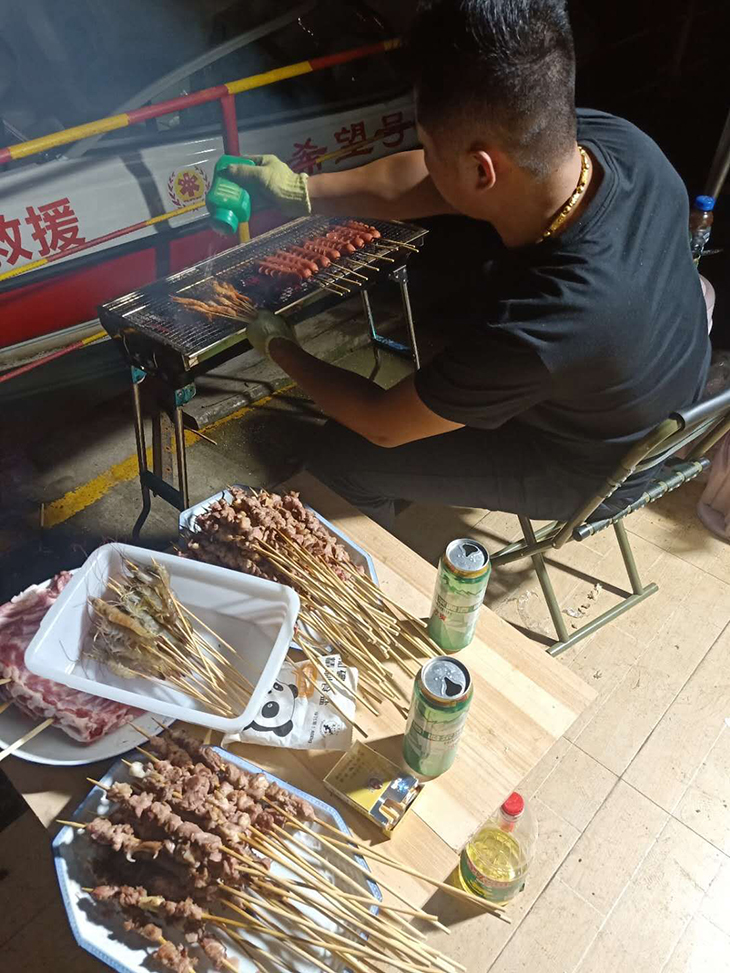 下午三时,大家到达了公司赞助的救援队码头,此时公司已为大家烧烤准备了整个一只新鲜的羊肉及其工具,救援队兄弟们已经给烧烤的羊肉切成了小丁子,大家一看这么大一盘羊肉,唤呼雀跃,洗洗手齐上阵,共动手,一起串起了羊肉串,一小会儿功夫一百多串羊肉齐刷刷的串好。个别年轻的员工看到停在码头的快艇,已是迫不及待,都想令人欲试身手,这家伙可是好多人平生第一次玩,既兴奋又胆怯,跟随着我们救援队师傅指导下,个个穿好救生衣,都想跃马扬鞭。第一个上场的是我们箱体车间的小李,他好像天生是一个快艇手,一上场就好比是一个老手,没有半点胆怯,拉起油门就直飞水面,溅射出层层水花,刺激而欢愉的叫喊声不绝于耳,脸上推满了开心快乐!三圈下来顺利入泊位。在他的带领下大家一一体验了这水上摩托的惊险刺激。事后彼此分享这份喜悦!