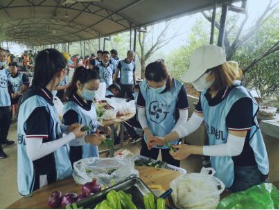 蓝蓝天空,美得不像话吧!大家的心情也像这明媚的阳光一样,到了拓展场地第一件事就是集合,看着一列列方阵多么地整齐,这就是腾博官网诚信为本专业服务人的风貌!随后营销总监兼拓展教练沈总介绍了上午的拓展任务,厨艺大比拼!当沈总说开始的话音刚落,六支队伍的队员顷刻间化整为零,有的去准备食材、有的拿起锅勺化身大厨、有的点燃烤炉摇身一变成为全场最火热的那个人,场面一下子热闹起来。