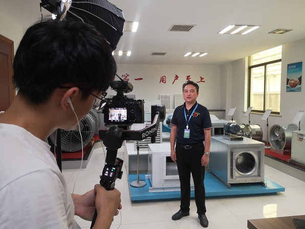 随后采访小组进入车间进行拍摄,作为风机市场最早的开拓者之一,我司目前已经有了完善的产品链以及未来几年内的产品规划。目前市场中的HTFC系列柜式离心风机,SJF系列高效节能轴流风机和RTC系列新型屋顶风机都受到了广泛好评,HTF系列消防排烟风机、SWF混流风机等产品都有生产线,精湛的工艺与高效的生产得到采访小组的一致称赞。