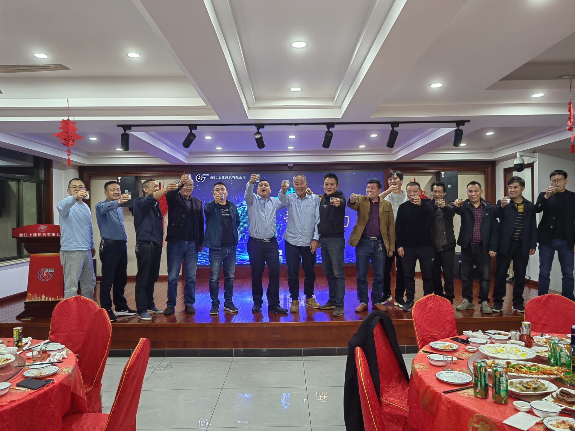 会议结束以后,公司诚邀各位供应商代表会餐。在酒会上主持人贝建波表示公司取的成绩得益于市场母体的滋养,凝聚了腾博官网诚信为本专业服务风机全体员工的汗水和智慧,更离不开商业伙伴们的大力支持。并说道“同商,同道,同乐;有你们的支持,我们更有信心;有你们同行,我们更有力量;有我们同在,大家幸福快乐!”