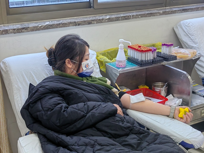 随后,他们依次走进采血室,挽起袖子,献出一袋袋饱含温度的血液。其中有第一次来献血的“新生力”,也有熟门熟路的“老血包”了,个个都热情高涨。