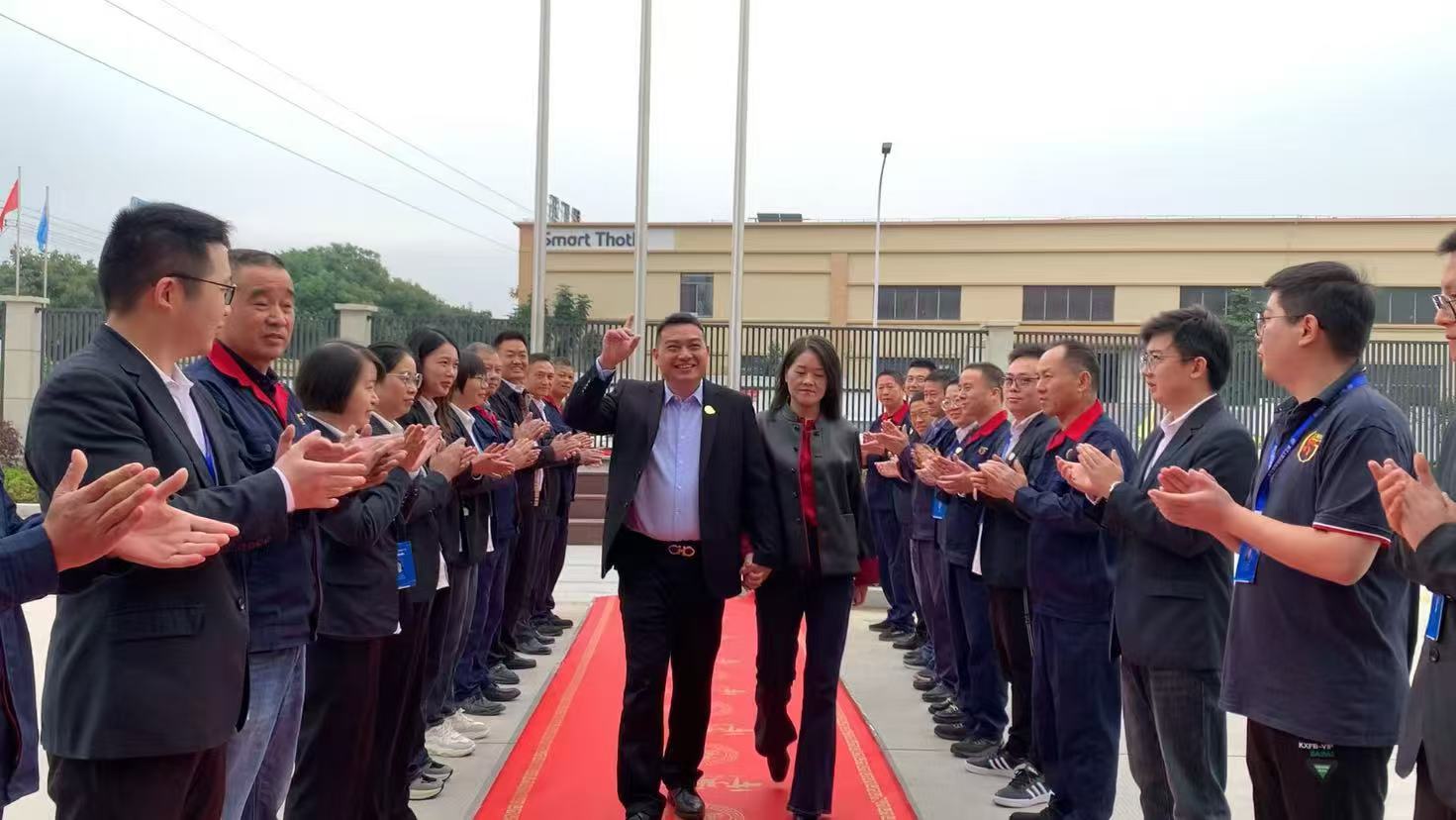 随后,在现场全体员工见证下和热烈的掌声中,董事长携手其夫人共同为运营决策中心进行了揭幕,大家共同举杯,致敬过往的携手共进,更愿未来与大家相互扶持、彼此成就,现场气氛在这一刻被推向高潮。